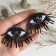 Embroidered earrings in the form of Black eyes with a heart. Large, stylish and very light earrings will emphasize your personality.