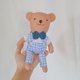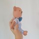 The little bear doll named Clumsy, size 7x25 cm, comes with a shirt and pants. Exchangeable. The material is a thick calico, natural color. Stuffed with good quality polyester fiber, then soft and fluffy, with extra accessory as a bow to tie the neck.