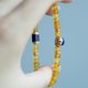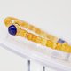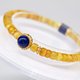 天然琥珀直切珠 ,质地细腻油润。搭配天然阿富汗老矿料青金石,古法磨砂质感S925银镀金镶嵌,浓郁深蓝偏紫调,油性足、密度高。