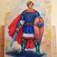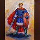 一幅原创油画,描绘了俄罗斯民间故事中的人物——英雄阿廖沙·波波维奇。该画是用油彩绘制的,画布在纸板上,尺寸为 35x25 厘米。