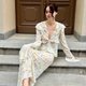 精致细节:深 V 领可使裸露的皮肤延长颈部的长度,使整体看起来更瘦,腰部漂亮的荷叶边短袖上衣充分展现迷人的腰线,松紧腰部长裙和飘逸的下摆使其可爱而优雅。