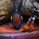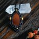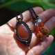 深邃的红色调,令人印象深刻的红玉髓。光线穿透时,红色调更显透明感,是寻觅红色宝石之人的推荐之选。点缀着黄铜珠饰,打造出精巧别致的坠饰。