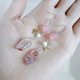 树脂部件的部分,我们在硅胶模具中,分层封入红色、紫色、粉色系的混合圆形亮片、石榴石色的不规则亮片、金色宝石、白色亮粉等,再以 UV 树脂液层层堆叠,打造出闪耀迷人的质感。