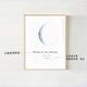 客制化月亮图,礼物定制,生日送礼!结婚送礼! 送男朋友礼物,女朋友礼物。根据您提供的日子转化为当天月像图。定制一份特别的礼物送新婚的朋友或者你的爱人,记录你们的重要日子,也能作为生日礼物送自己,家人或朋友,兼具装饰和特别意义之用途。款式选项中”金色点“为手工制作的金色颜料装饰,可根据您的需求选择。【可选择月亮颜色】免费送画框!