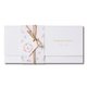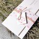 上掀式附封套的精美设计,再手工系上麻绳与花环小卡,让亲友感受到小俩口浓浓的真挚情意,打开简约感烫金珠光卡片,内页像是烙印了树木纹路并绘上绿意花叶,不落俗套的设计感打动了所有受邀宾客的心。