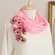 以触感柔细的棉质围巾,缀上丝线编织的花朵。