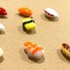 这款是使用树脂黏土制作的立体寿司贴纸,一组有9入。