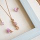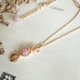 Rosé collection Design from inspiration of spring time. When flowers begin to bloom and butterflys seek honey from them. Silver wire wrapping necklace, plated in rosegold, with rosequartz. Adjustable 16-18 inches. Materials : sterling silver, rosequartz.