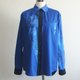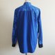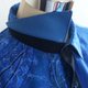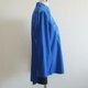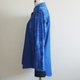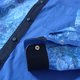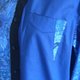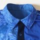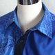 以皇家蓝布料为基底,前后身片与胸前口袋处,以印花布料斜向拼接。