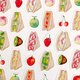 这款散装贴纸描绘了充满水果和奶油的水果三明治,采用水彩风格绘制。