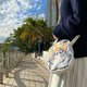 |小尺寸:约为18cm x 19cm,能放电话短银包及小量衞生用品或化妆品 |大尺寸:约为23cm x 24cm,能轻松放得下长银包哦 |物料:帆布 |另有叉烧家细妹猫形斜孭袋