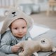 Soft and cozy baby toy in teddy bear design. Toy is made out of baby friendly materials, is a nice gift not only for baby but bor a toddler as well. The face is embroidered. You can choose one of the fabrics - frote or plush. The toy goes as a rattle.