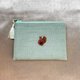 Hand embroidered back of animals about 5cm on cotton linen. The outer fabric is taut and firm. The inside has a divider to make it more functional.