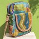 - ▲来自印度沙漠地区的gudri刺绣工法,严选印度丝绸回收纱丽布+棉线刺绣 ▲侧边连接金属扣设计,皮革背带可调整长度
