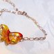 It is the butterfly bracelet that the image of a flurry to expand the large wings. Based on the clear, amber and orange in addition, it has undergone a dichroic polarizing glass that has been called the king of the glass very beautiful to the whole. Sink while emit a strong shine to the sea, is very beautiful shine like the sun. The chain has put a pink gold color and small red bean design chain. To fit the wrist around can be adjusted in length.