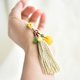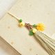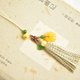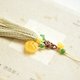 搭配点缀碧玉银杏叶,搭配蜜蜡桂花,搭配碧玉圆珠,搭配彩色棉线流苏,手工绕线连接。