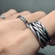 **琉化抛光处理,每个戒指以5条同尺寸银线编织,尾端使用熔接方式制作(融化焊接)**