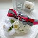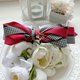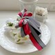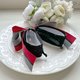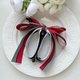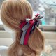 使用挺感的千鸟纹拼素色织带折成自行发想的立体蝴蝶结,蝴蝶结设计成不对称的图案以增加特色;夹身配上烫钻织带和素色织带,喜欢较为个性风格的人可以选择这款。