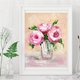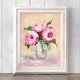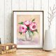 - Pink Flowers Original Painting, Roses Wall Art, Floral Artwork, Art Gift for Woman. Size 25 x 20 cm (10" x 8") Materials - oil paints, cardboard. This is an original, one of a kind, handmade work of art written in the style of impressionism. It is signed in the backside.