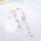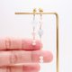 不对称的组合由天然切面海蓝宝与巴洛克不规则形状珍珠, 设计成长短吊串条款式, 能搭配不同类型风格的服装。晶石及珍珠与轻珠宝常用的14K包金金属, 搭配成的吊串造型, 独特而优雅。