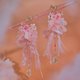 Gold-plated S925 Ear Pins | Gold-Plated Metal Chain | Handcrafted Resin Flower | UV Resin Hardening Coating | Swarovski Crystal | Rainbow Ribbon | Melton Cloth | Fabric Flower