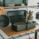 本次合作Y-280日制工具手提箱,推出军绿色与卡其色两款户外热门选项。经典的日制工具手提箱外型提供露营用品(营槌、营钉、营绳…等)合适的收纳机能,提把在搬运时更加顺手。扣环处设计有直径4mm之锁孔供锁头使用,更添安全性。