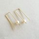 轻耳饰 天然珍珠 925纯银线 设计师手工饰品 925纯银线 搭配天然珍珠 5~6mm 耳垂以下长度约35mm