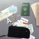 可将本来收在包内的机票、护照先拿出来,放在一字体收纳口袋,入海关、登机时才不会手忙脚乱,另外也可以收纳地图唷