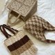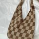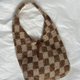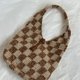 棉麻线手工编织经典撞色格子肩背包