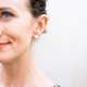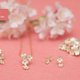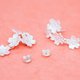 These popular Japanese cherry blossom earrings are made up of four blossom flowers, with the bottom one freely able to swing with movement.