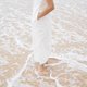 Cut from white denim, minimalists would love to wear this with little shiny jewelry. But, if you’re looking to make a statement in your bold summer accessories, this dress would complements that so well, too. This classic design spices things up a bit with side splits so no one would dare say it’s boring!