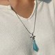 这款以海蓝宝做主石,配上了西式雪花吊坠,修长的造型,男女合用一个款。