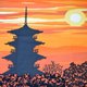 描绘了着名的世界遗产东寺五重塔在黄昏时分的壮观景象。