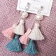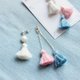 粉红&粉蓝色流苏连接耳壁(可拆),换上普通耳壁即可变成一对白色流苏珍珠耳环。