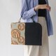 - 【14 寸笔电包】可放入 14 寸笔电,使用日本印花布拼接台湾帆布,搭配可拆式真皮提把,包体为铺棉设计,内含口袋可放置配件。