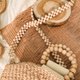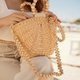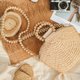 The trapezoidal water hyacinth woven bag, wooden beads round handle.