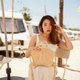 The bag is perfect for sweet girls, chic look and instagramable. the strap is pretty beads design can be removed, used to carry so chic. Inside the bag is velour fabric color match with water hyacinth, 1 card slot with gold zip closure.