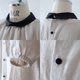 Black walnut buttons lined up on the back and the same black cleric collar make this a mature and cute blouse.