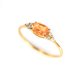 这款 K18 戒指以椭圆形切割的锰铝榴石为主石,两侧点缀着六颗小钻石。宝石散发着清澈鲜艳的橙色光芒,与钻石的璀璨交织出动人的和谐。