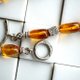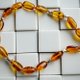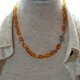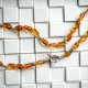 这条项链由产自波罗的海沿岸的美丽糖果色琥珀制成,并用丝线绑在一起。它长约10至12毫米,形状像一块滚石。