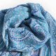 ▲喀什米尔靠近喜马拉雅山,为了对抗特殊的酷寒气候,刺绣羊毛是喀什米尔利用当地自然环境发展出来的一种细致的工艺, 当地海拔高,水的沸点低,早晨在太阳上升时,将羊毛制品,放入融化的高原雪水中浸泡,之后加热沸煮。到了傍晚太阳下山时,再把羊毛制品在月光下晒,经由繁复工续后的产品, 不但可以清除掉一些杂质,羊毛产生收缩,纤维之间更加地紧密,最后经由妇女手工编织及刺绣,呈现一件件颜色及绣法独特的织品