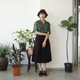 GOC Studio 水仙花图案 天丝棉麻材质衬衫 - 绿底黑白线条花