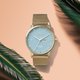 蓝色来自于北极澄澈的海水 天鹅蓝表面搭配金色皮带配色