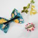 蝴蝶结以和风布料剪裁而成,每个蝴蝶结的花纹布局多少会有所不同,特显独特性。