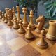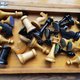 棋盘的黑白格子是由不同颜色的木单板组合而成。