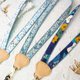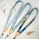 灰蓝色系Y型减压双色花布真皮手机颈挂绳 - 挂绳/吊绳 - 棉.麻 蓝色