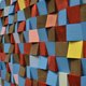 **天然松木被干燥并锯成段,这些段被浸渍在不同颜色的天然油中。 将元件附着在胶合板上并涂上蜡。