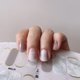 Step 3/将指甲贴对准甲面底部边缘置中贴上,然后向左右两边整平指甲贴。