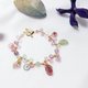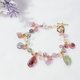 严选顶级碧玺,巧雕如意(如人所意、吉祥富贵)、平安扣(古钱,招财)、葫芦(福禄、事业)、福瓜(招财、平安),多宝钏概念设计,宝石件件色彩匀净、火彩闪耀,春意盎然的缤纷彩虹链身设计,仿佛将缤纷花朵戴在手腕上,整体时尚亮丽、细致优雅。