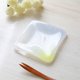 - A small glass plate with an attractive flowing pattern and transparency. The cool colors add a little freshness to the dining table. It is also recommended to use it as an accessory tray.
